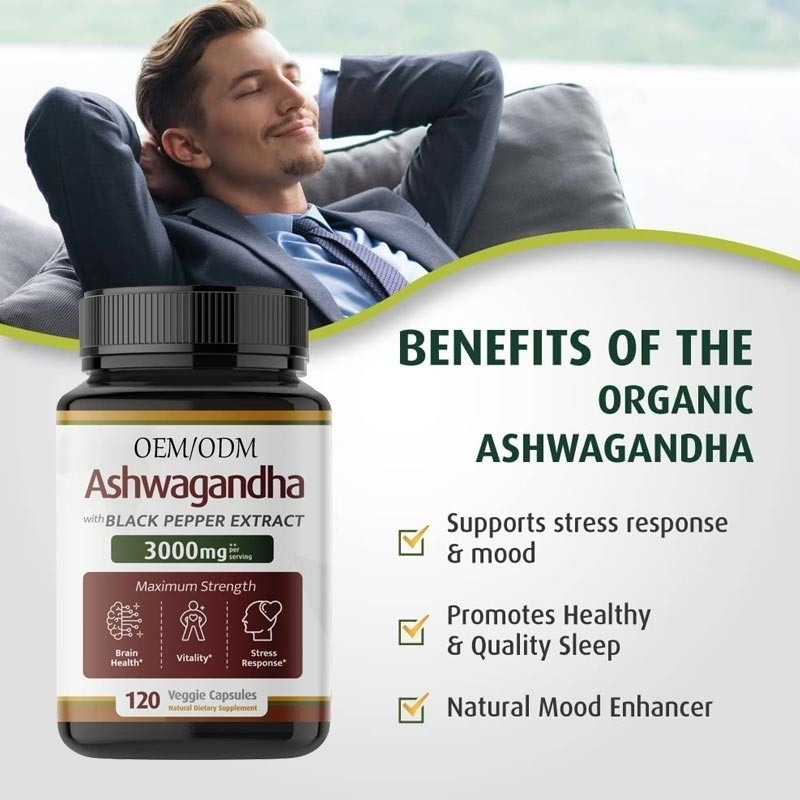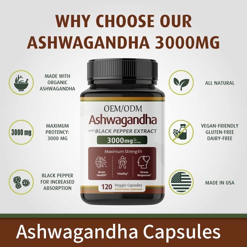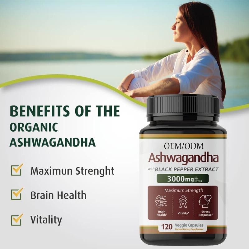 OEM Organic Ashwagandha Capsule Extra Strength 1000mg Supplemento di supporto energetico
