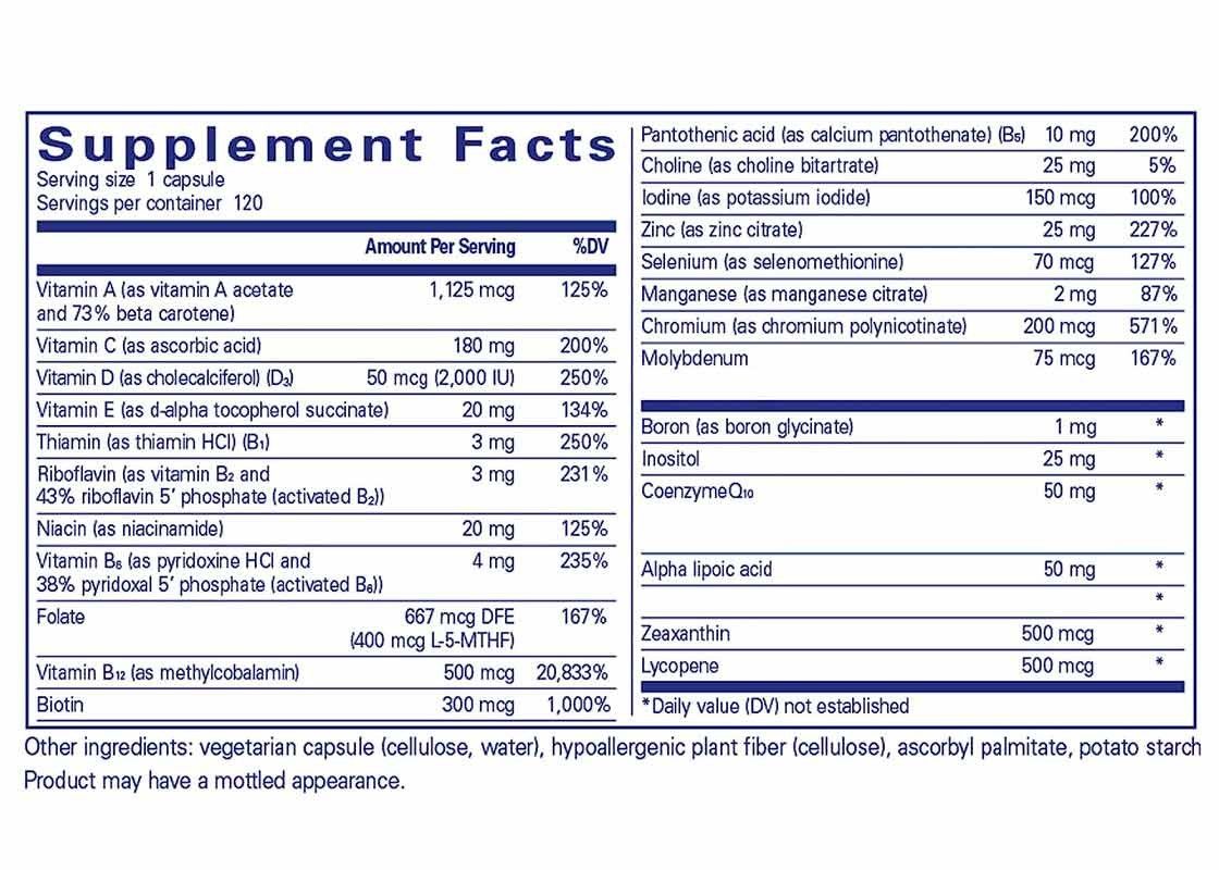 Multivitaminico per donne e uomini: le capsule una volta al giorno forniscono vitamine A, B, C, D ed E in forme altamente biodisponibili; CoQ10, L-5-MTHF e ALA per il supporto antiossidante.