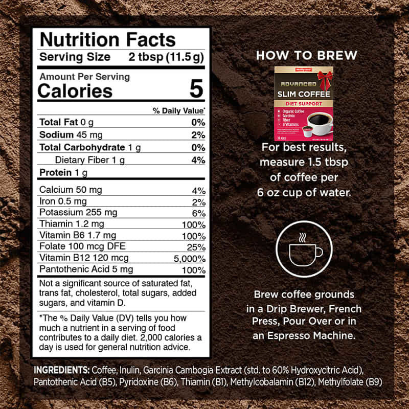 Supporta il tuo percorso con il caffè dimagrante, il modo più veloce per ottenere una deliziosa tazza di caffè gourmet. Arricchito con superfood che si sono dimostrati complementari alle tue esigenze quotidiane. Abbina il nostro Slim Coffee a uno stile di vita attivo e a una dieta sana per raggiungere i tuoi obiettivi di perdita di peso.