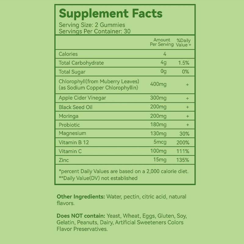 Ingrediente principale:Clorofilla, aceto di sidro di mele, olio di semi neri