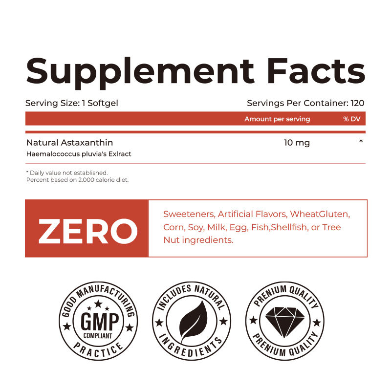 Capsule di Astaxantina Softgel Fabbrica OEM Integratore di Astaxantina Naturale per Aumentare Energia e Forza, Supportare la Protezione delle Articolazioni