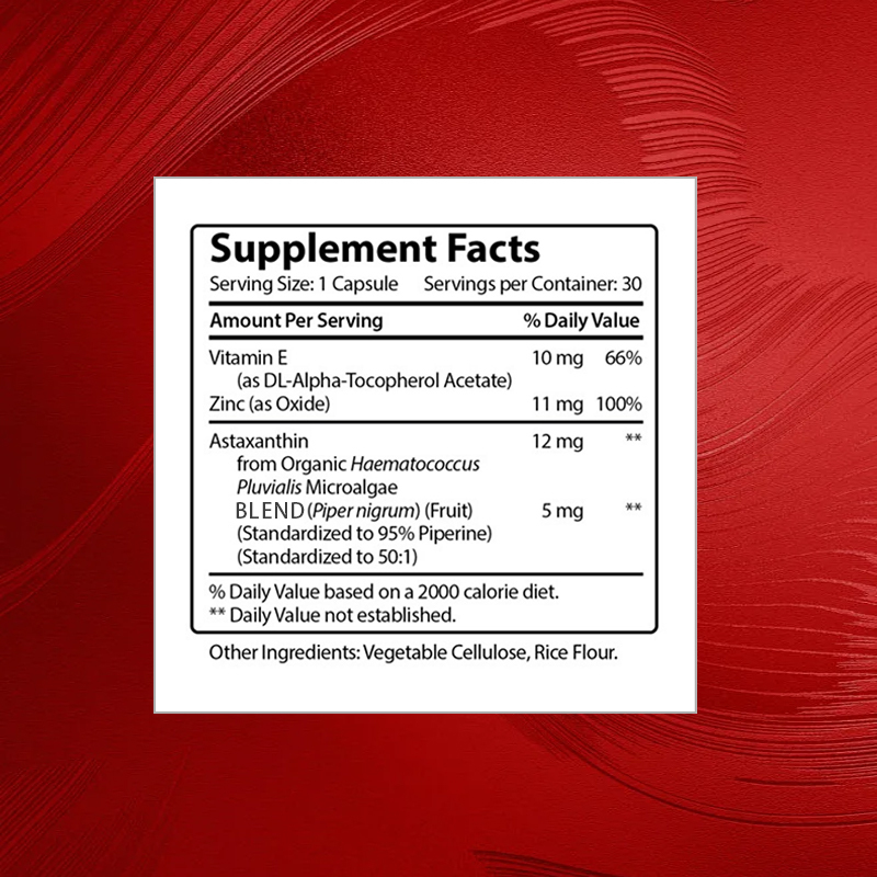 Massimizzare il potenziale - Vitamina E, zinco e BioPerina hanno tutte proprietà che amplificano i benefici dell'astaxantina e ne aumentano l'effetto.
